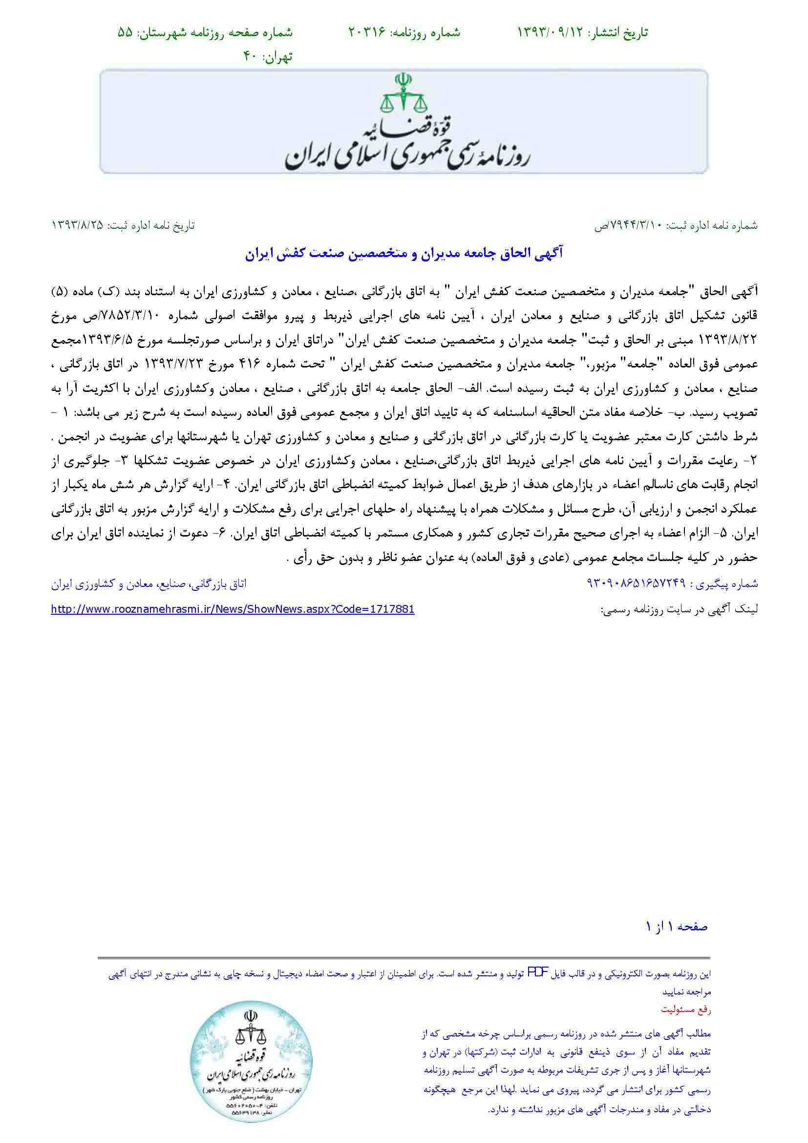 | اساس نامه صنفی جامعه مدیران و متخصصین صنعت کفش ایران_مورد تائید اتاق ایران | |