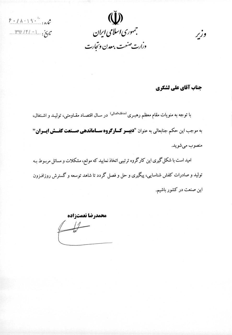 | ۱۳۹۶٫۴٫۱ | انتصاب مهندس لشکری به عنوان دبیر سامان دهی صنعت کفش ایران | ↓ | |